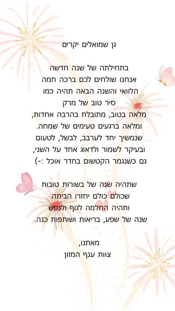 החטופים שעדיין נמקים במנהרות החמאס כשהתקווה להשבתם הולכת ומתפוגגת וחיילנו הלוחמים מלחמת שרידות פוליטית של ראש ממשלתנו אשר מקריבים את נפשם ואת לב משפחותיהם לשם כך, מעיבים על כולנו וליוו אותנו לאורך השנה שחלפה כצל גדול ושחור.