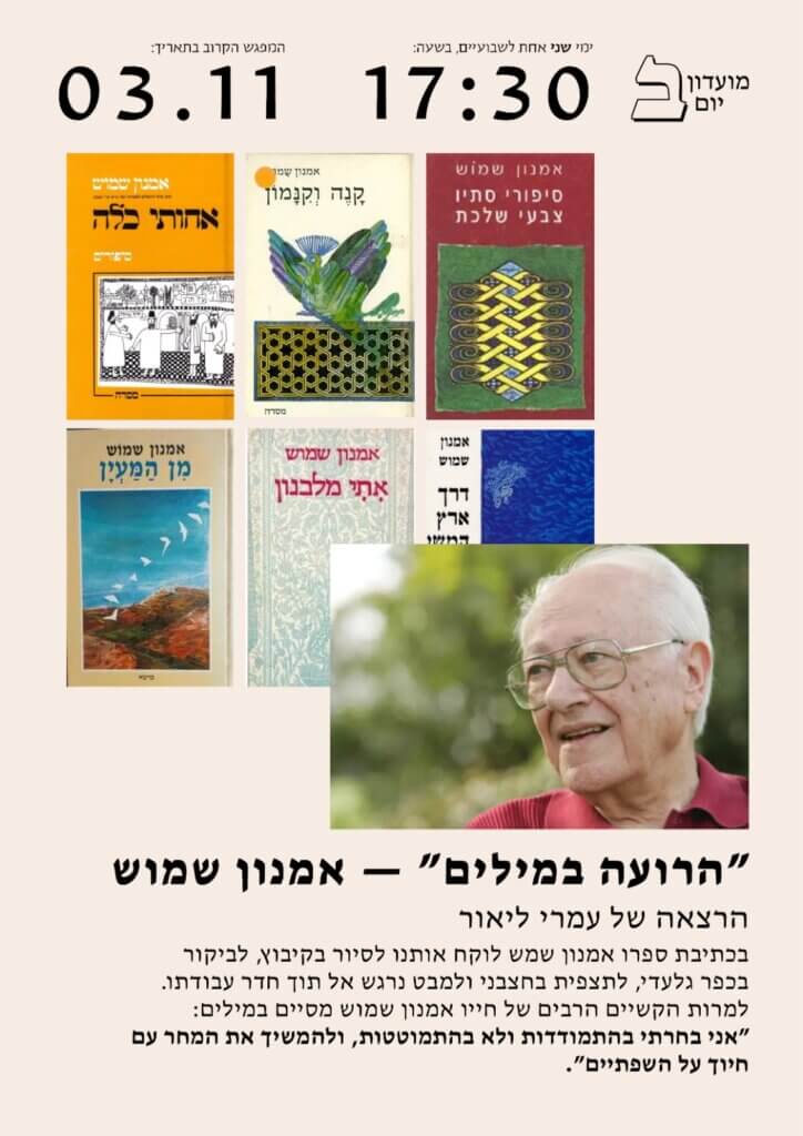 בכתיבת ספרו אמנון שמוש לוקח אותנו לסיור בקיבוץ, לביקור בכפר גלעדי, לתצפית בחצבני ולמבט נרגש אל תוך חדר עבודתו.