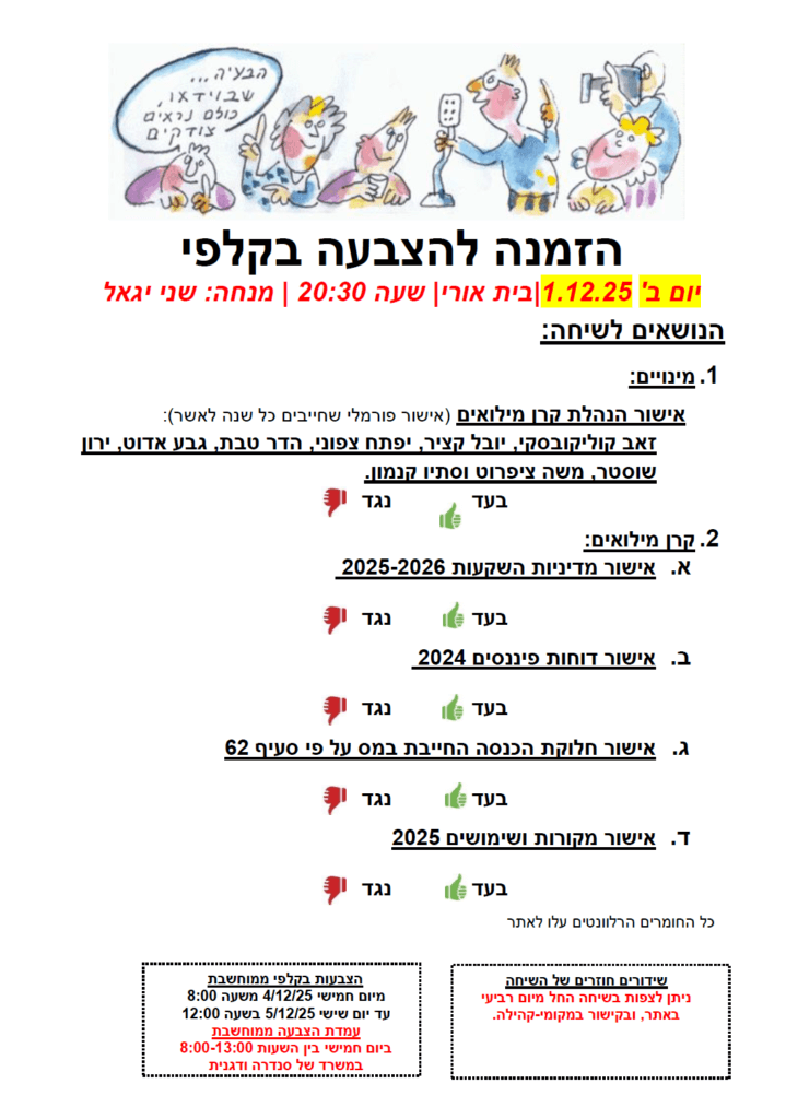 6. העלאת אחוז התגמול לחברים מעבר ל – 15% מסך הנטו, תחייב רוב בקלפי של 2/3