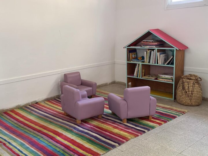 על לוחות המודעות תלינו תמונות של גן נרקיס לאורך השנים (שיתוף פעולה עם מנהלת הארכיון) השארנו במודע, כחלק מסיפור מקום, את המגירות עם שמות ילדי מחזור 2023, עיצבנו מרחב רגוע ומזמין המאפשר משחק , יצירה, מפגש, הנותן ביטוי מוחשי לשינוי והתחדשות, סיפור על  קהילה שחזרה לביתה אחרי מלחמה, קהילה שכמהה להשתקם לחזור לגדל ילדים ולהיות יחד.