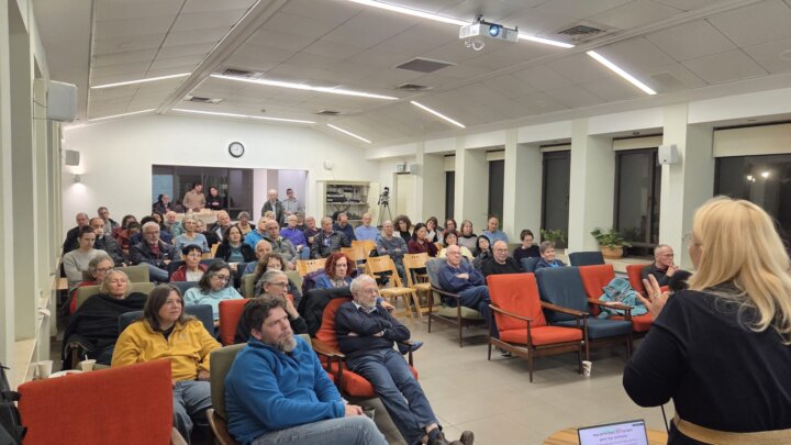 למפגש הגיעו כ- 80 איש. הנושא היה מאוד מעניין. הגיעו אלינו מרחוק: שירי מור שהייתה עד לפני חודשיים מזכירת קיבוץ ומנהלת קהילה של קיבוץ צאלים ותמר קולר מזכירת קיבוץ שער הגולן יחד עם אילן אופיר, מרכז המשק.