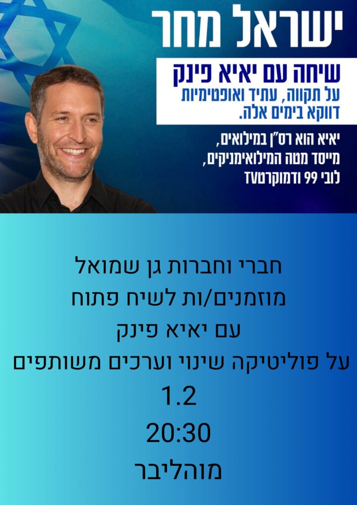שיח פתוח עם יאיא פינק על פוליטיקה, שינוי וערכים משותפים
