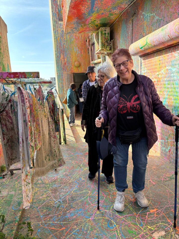 התחלנו בביקור בבית הצבעים בדליית אל כרמל, אחותו של האומן סאם חלבי קיבלה את פנינו, צפינו בסרטון מרגש והסתובבנו בפליאה בבית הצבעוני והמיוחד שעורר בנו שלל מחשבות ורגשות, מהתרגשות פשוטה על הצבעוניות והיופי עד הבנה כמה משמעותית עבודת האומנות בעיבוד תהליכי אבל (מות אמו).