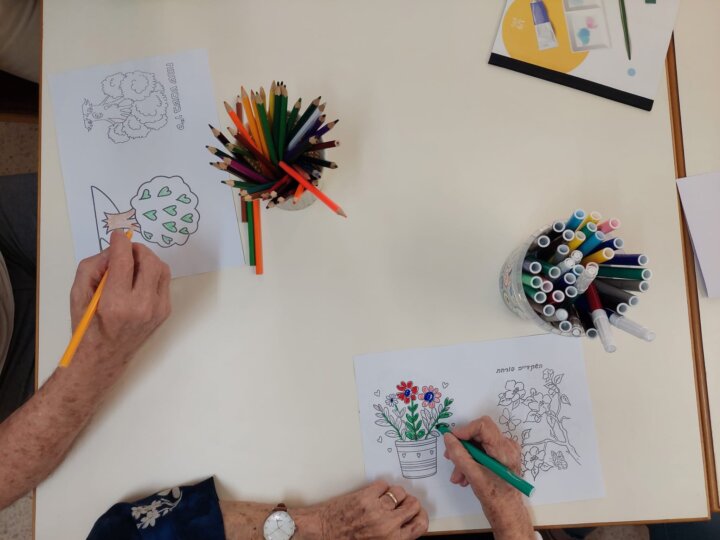 הפגישות מתקיימות בחלל נעים, עם חומרי יצירה מגוונים.