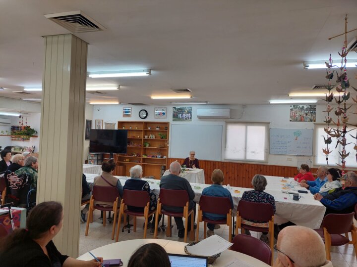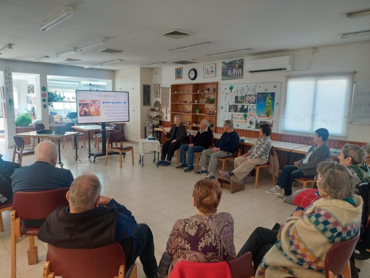 בתמונות חלק מפעילויות השבוע: סדר ט"ו בשבט בהנחיית נתליה גולן, שירי חג עם ליאורה אורן, מפגש עם ילדי גנון בוגר "פרפר" שהביאו ברכות, שירים ועציץ נרקיסים, הרצאה של נעמי יצהר על עצים במקרא, פילאטיס עם אדוה רוטלידג' והכנת ברכות ט"ו בשבט.