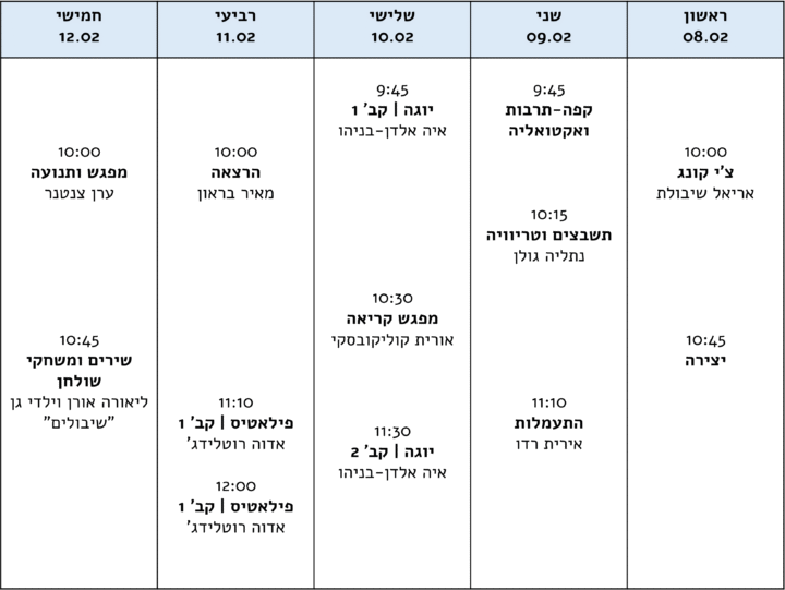 מצורפת תכנית הפעילות לשבוע הבא, נשמח שתבואו.